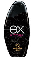 Ex Appeal- Instant Gratification Bronzing Blend: Natural bronzers produce immediate dark tan color and enhance the natural tanning ability. Colorush Technology: Fast release system of specialized extracts for instant deep, rich color. Sexy Skincare: Sensational blend of Vitamins, Aloe Vera, Shea Butter and other natural ingredients for touchable, soft, smooth skin. Pheromones: Nature's secret seductive weapon inspires flirtation and attraction.