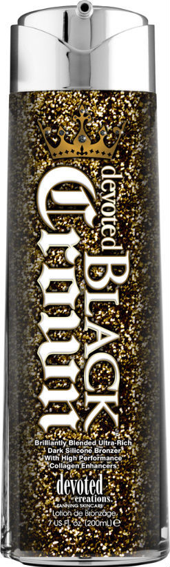 Black Crown- uses perfect levels of DHA, natural and cosmetic bronzers to deliver incredibly dark immediate and long lasting delayed results. Added Advanced Matrixyl Synthe 6, Renovage, Body Fit and Ideal Lift make this bronzing blend the ultimate in tightening, toning, anti-aging and wrinkle reducing. This iconic tanning formulation also utilizes Nouritan & Mela-dark to produce the most natural looking dark color while also stimulating tyrosine activity to give your tanning results a jump start. Potent Bioactive Tetra Peptides and Lipochroman-6 will work to increase collagen production and fight against stress caused cell damage.